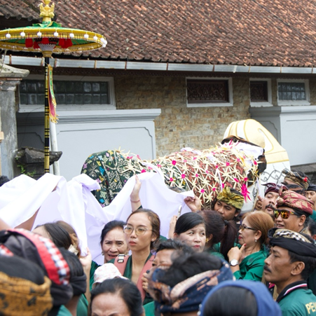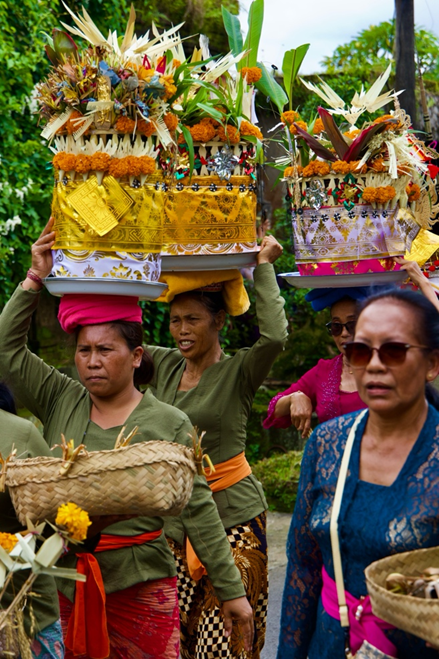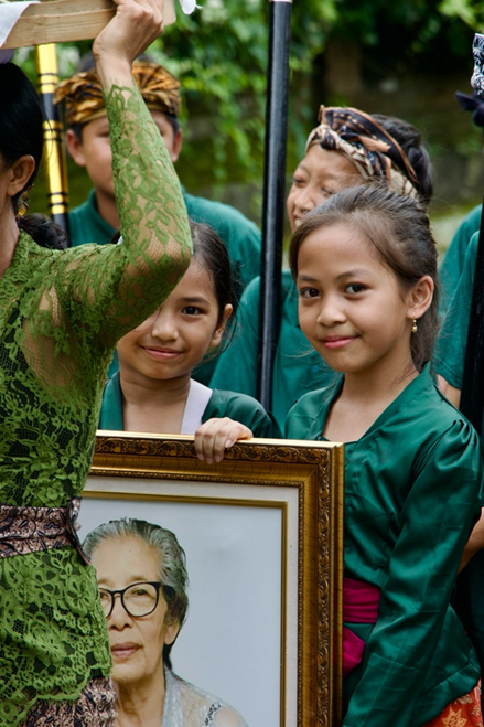 Accompanying the procession is gamelan music and singing by young women also dressed in white started as they make their way to the kuburan, or cremation grounds.