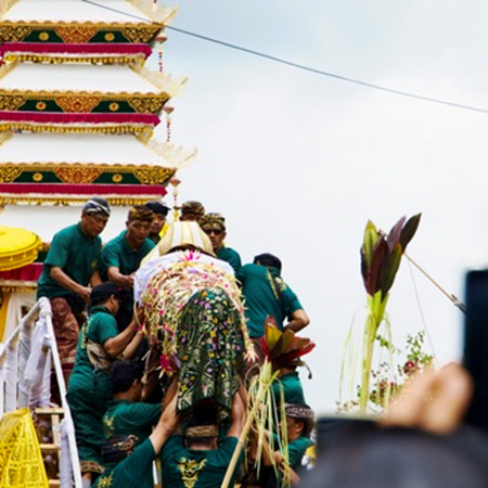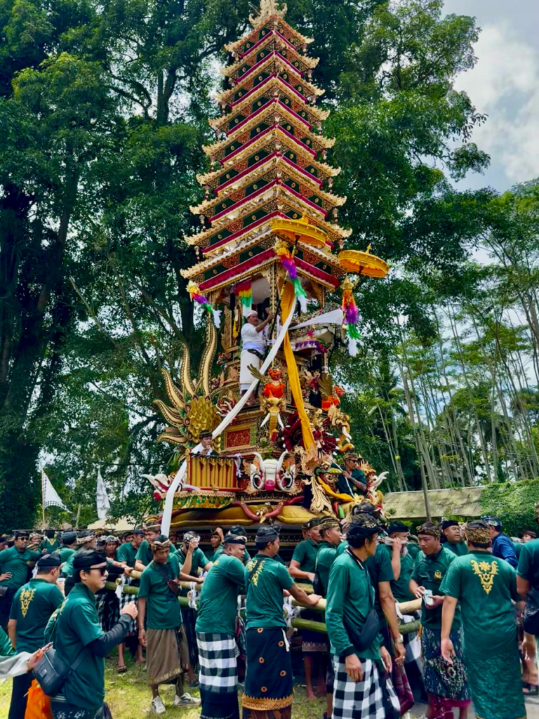 Unlike sombre Western funerals, the elaborate Balinese ritual involves colourful processions with ornate towers carrying the body to the cremation site where it’s burned in an animal-shaped sarcophagus to purify it with fire, followed by scattering ashes in the sea for water purification, creating a festive spectacle of music, chanting, and community gathering.